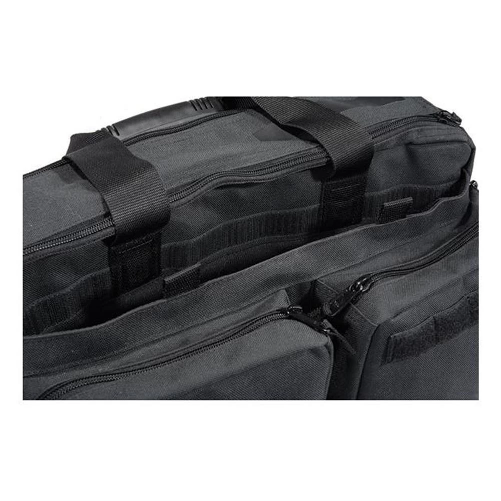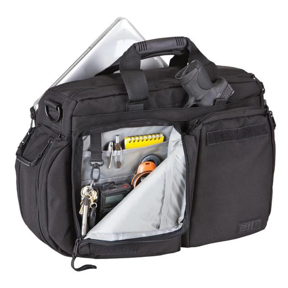 With plenty of space for all of your gear, the 5.11 Side Trip Briefcase is a highly functional travel bag. With a spacious main compartment and numerous additional pockets, this bag makes organizing all of your accessories easy. It can fit a laptop, concealed firearm and all of your everyday carry gear. Combining a professional appearance with rugged 1,000 denier nylon construction, this bag is built to handle any situation. The interior is lightly colored so you can identify your contents quickly and is MOLLE/ALICE compatible for accessory attachments. A molded handle and removable, padded shoulder strap allow for comfortable carrying. Whether you’re on the battlefield or in the boardroom, this bag will show that you mean business.