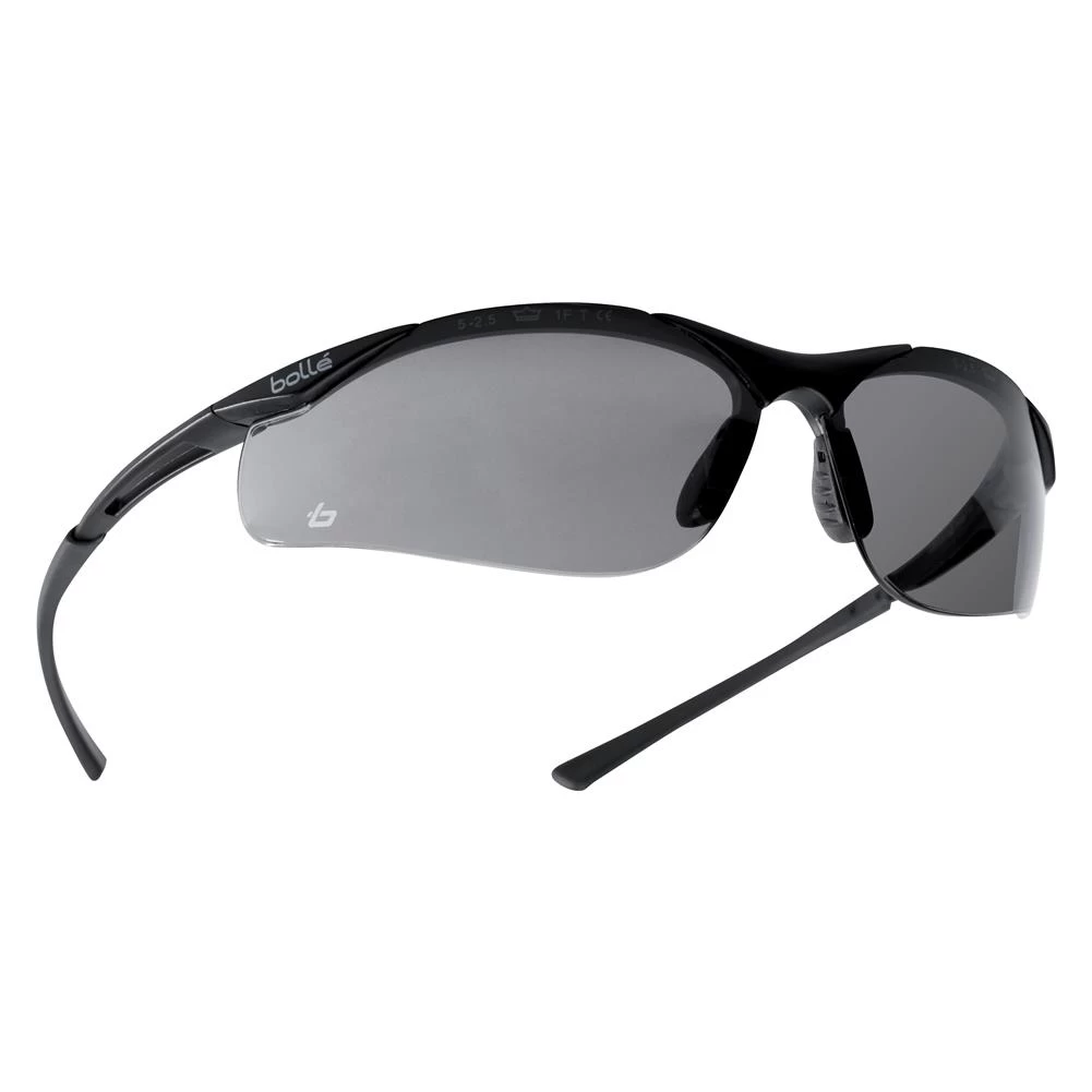The Bolle Contour safety glasses are lightweight and sporty, featuring a sturdy frame, non-slip bridge and TipGrip temples. As one of Bolle’s top selling models, the Contour provides a comfortable and protective style that meets ANSI Z87.1-2010 and CSA Z94.3-2007 standards. Anti-scratch and anti-fog coating technology on the clear and smoke lenses guarantees safety and reliability, while anti-scratch ESP lenses combine the advantages of clear and tinted lenses into a single model. When it comes to your vision in situations where safety matters, you can’t go wrong with the Bolle Contour