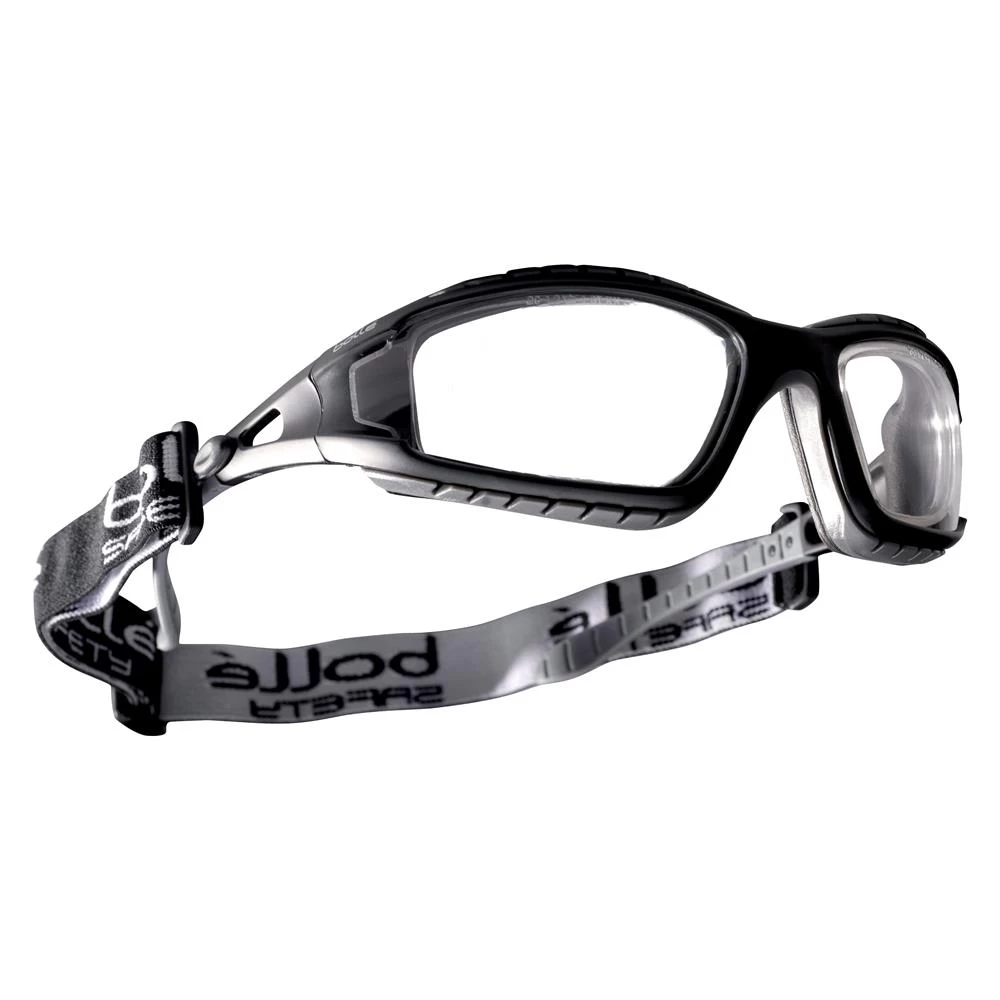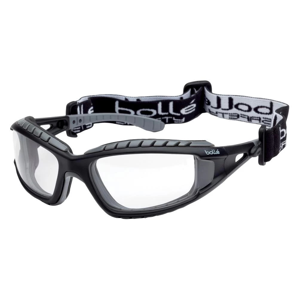 Ultra-comfortable and technical, the Bolle Tracker safety glasses provide protection from all mechanical and chemical risks, making them unique in the industrial safety market. With removable foam and an adjustable strap, these glasses can be customized for an optimal fit for each wearer. The high contour lens utilizes 180 degree distortion free viewing for superior optical quality while also providing high UVA and UVB light absorption. The high impact polycarbonate lens features an anti-fog and anti-scratch coating on each side, adding durability and reliability when it comes to your vision on the job. The Bolle Tracker technical glasses are perfect for ultimate protection.