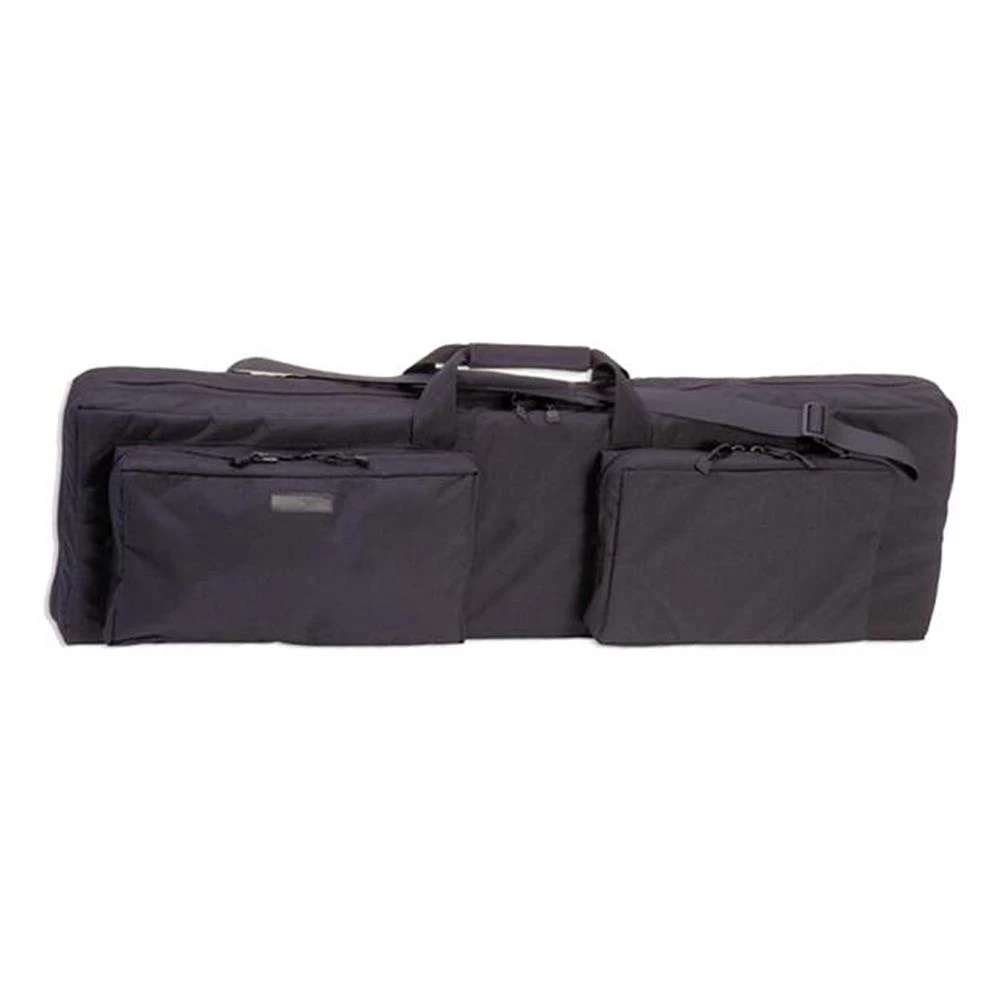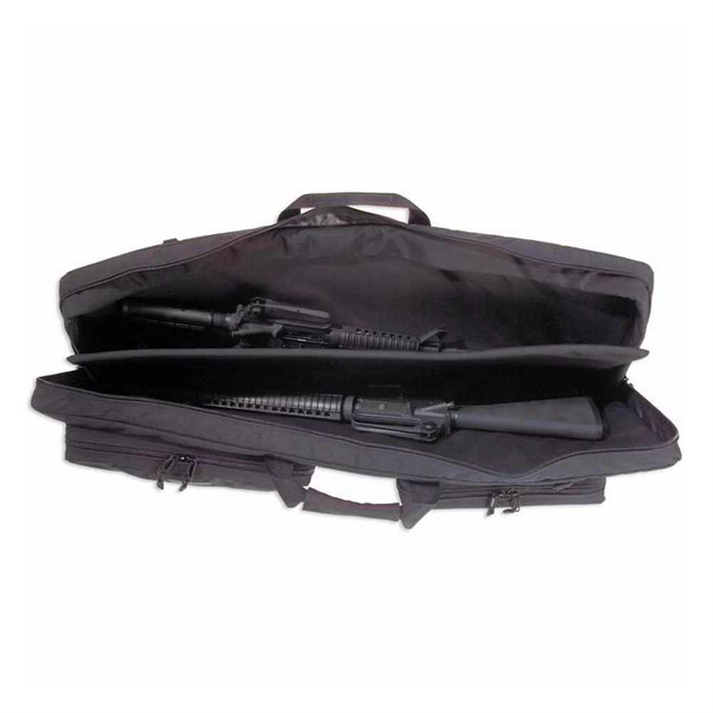 The Double Agent Case was designed to hold two weapons with an internal padded divider. It is constructed of 1000 denier nylon with heavy-duty zippers and hardware, and wrap-around handles. The case is padded with heavy 1/2″ closed cell foam panels (removable). Outside are two zippered accessory pockets, one padded. The case includes an extra wide hook and loop wrap handle, and a 2″ padded shoulder strap. Available in black only.