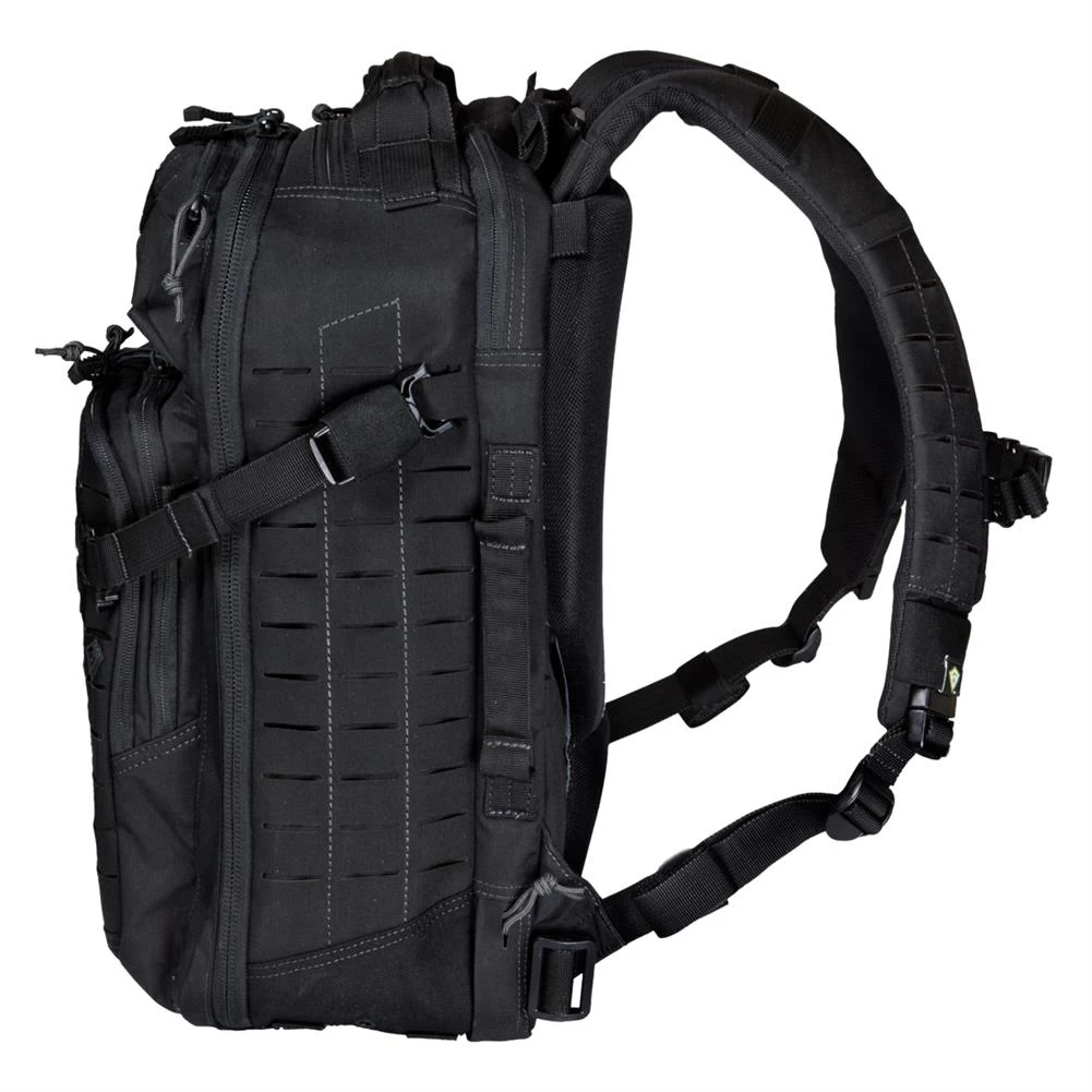 This sturdy daypack with an innovative Lynx Laser Cut Platform compatible with MOLLE/PALS, and Hook & Hang Thru compartment, exponentially increases organization options. Among compact tactical backpacks, the Tactix 1-Day Plus leaves its competition in the back of the pack.