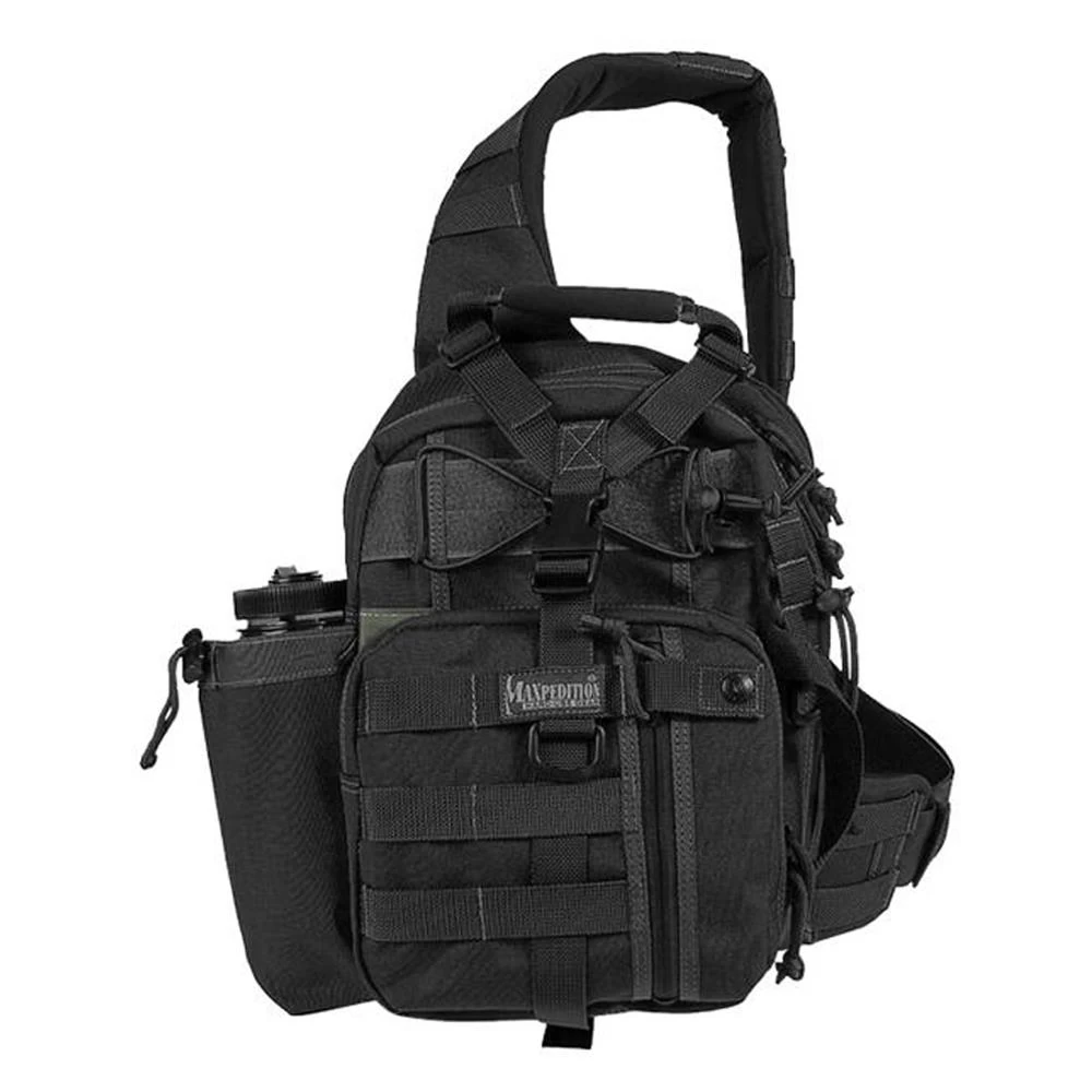 The Maxpedition Noatak Gearslinger delivers a durable exterior and highly functional design. The 1,000 denier nylon fabric has an extra layer of protection thanks to a DuPont Teflon treatment that guards against grime and a triple polyurethane coating for superior water protection. When worn on the back, this bag can be rotated 270 degrees towards the front of the body for quick and easy access to contents, an especially useful design feature when sitting down. The front sleeve has an anti-theft device on its zipper, while an exterior water bottle pocket is sized to hold bottles up to 32 ounces. Stitched with high tensile strength nylon thread and with reinforced stitching at high stress points, this durable backpack is built to hold up in tough conditions.