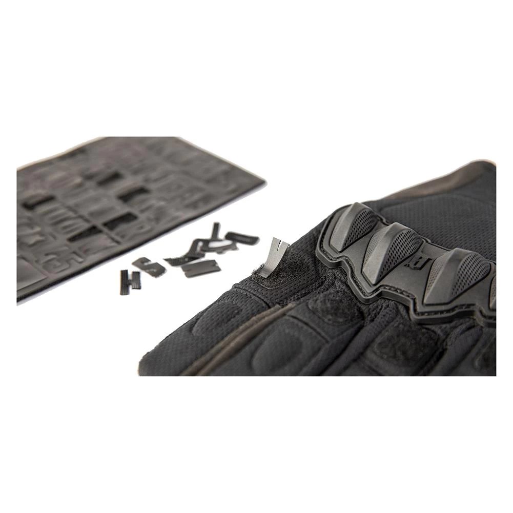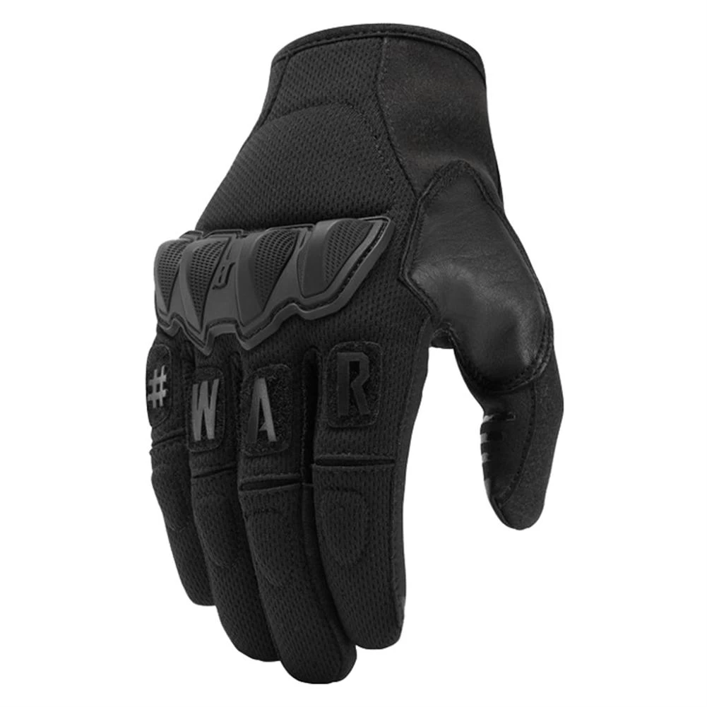 The range is littered with would be tactical gloves that have failed to live up to a weekend of training. Blown seams, shredded palms, failed fingers all tell a sad tale of handwear woe. The WARTORN glove was designed to overcome these points of failure while adding additional functionality. The thumb valleys are reinforced with COMBATIVE leather to defeat the aggressive checkering of modern polymer handguns. Reinforced fourchettes on the trigger and middle finger prevent premature gusset failure. Silicone printing on all fingers provide increased grip on slides, while the trigger finger and thumb are touchscreen compatible. A full sized polymer knuckle provides backhand coverage while segmented finger knuckles allow for increased flexibility. The integrated loop knuckle pads allow attachment of MORALPHABET letters (Sold separately), so you can sound off without ever saying a word.
