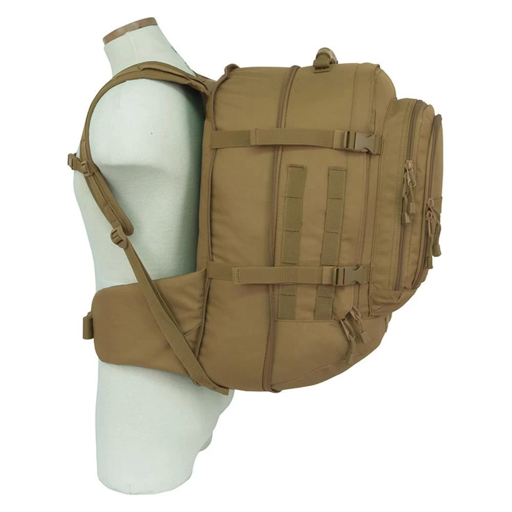 The Mercury Tactical Gear Three Day Backpack is able to hold easily all of your gear in one convenient place. This durable bag is constructed from 600 denier polyester to stand up to repeated use even in harsh conditions. The spacious main compartment is expandable for storing anything from a laptop to larger accessories with ease. For smaller accessories, the organizer pocket features several mesh compartments, creating a place for everything you need to store. Parachute clasps on the side compress the pack and lock contents into place for secure transportation, making this bag ready to handle whatever you need to carry.