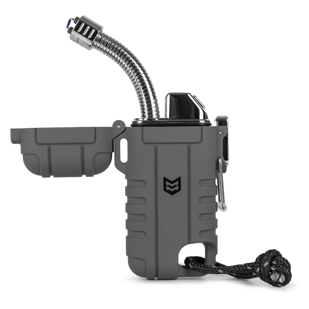 Say goodbye to your old, unreliable lighter and hello to steady ignition. The Mission Made Gooseneck Lighter uses flameless technology to ensure seamless sparks every time, even in hard-to-reach places. This lighter features a retractable and flexible 2-inch gooseneck extension which offers unmatched convenience when igniting campfires, stoves or anything in between. The water and windproof plasma makes it the ideal companion, regardless of inclement weather. With an impressive 300 uses per charge, you can rely on this indispensable tool to always be at the ready. The locking mechanism ensures that the lighter remains securely closed, preventing any accidental activation and even comes equipped with a ten-second automatic shut off. Since it’s constructed from a formidable combination of zinc, aluminum and polypropylene, it’s built to withstand the harshest conditions. Mother Nature has nothing on the Mission Made Gooseneck Lighter.