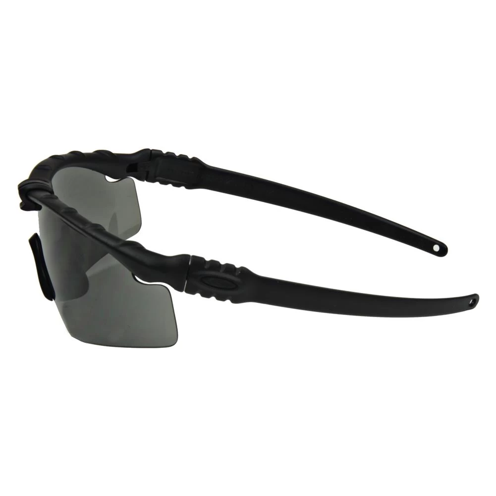 After spending decades engineering combat-ready gear for the U.S. Armed Forces, Oakley brings the future of protective eyewear to the battlefield with the SI Ballistic M Frame 3.0. It’s barely more than an ounce, but this rugged design meets or exceeds the ballistic fragmentation impact standards of MIL PRF-31013, Clause 3.5.1.1, and the high mass & high velocity impact requirements of ANSI Z87.1-2003/2010. Durability is optimized with a new thin stem technology, which also enables compatibility with over-ear hearing protection as well as communication systems. Vision remains clear and unobstructed because of the anti-fog coating. Paired with three optional interchangeable lenses, this optical system gives the ultimate in comfort, compatibility, clarity and convenience. You can count on clarity at all angles rather than just what lies ahead of you.