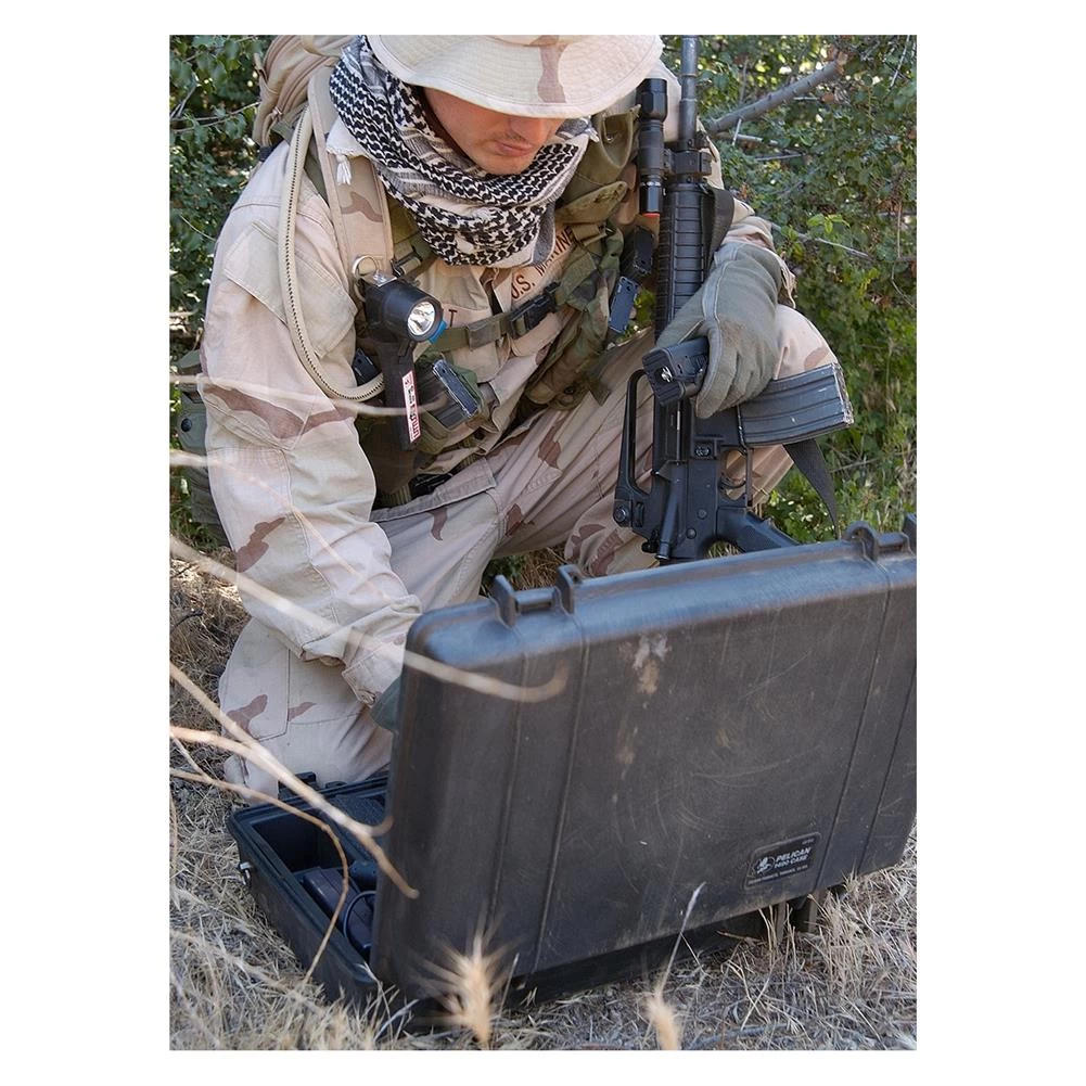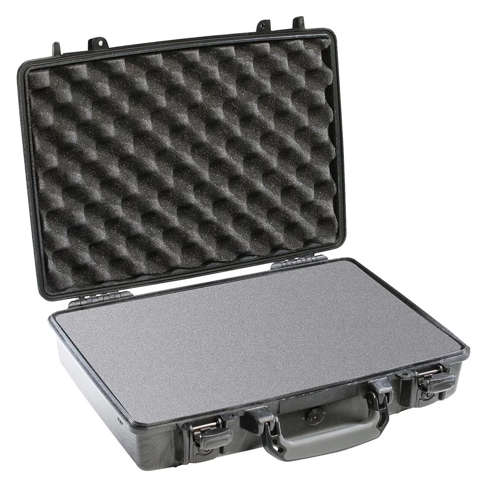 The Pelican 1490 Laptop Case is sized to fit notebook computers up to 17.3 by 11 by 3.3 inches. This digital survival case will get your computer through anything, from the most rugged terrain to a rushing downpour. The automatic pressure equalization valve balances the interior pressure and keeps water out, while an O-ring seal gives you the best defense against invading moisture or dust. Constructed from highly durable ABS and stainless steel hardware, this case is exceptionally tough thanks to an open cell core with solid wall design. Inside the case, Pick N Pluck padding along with convoluted lid foam gently and securely hold your gear, while double safety locking latches with keys keep out intruders. Carrying is easy thanks to a comfortable, rubber over-molded handle.