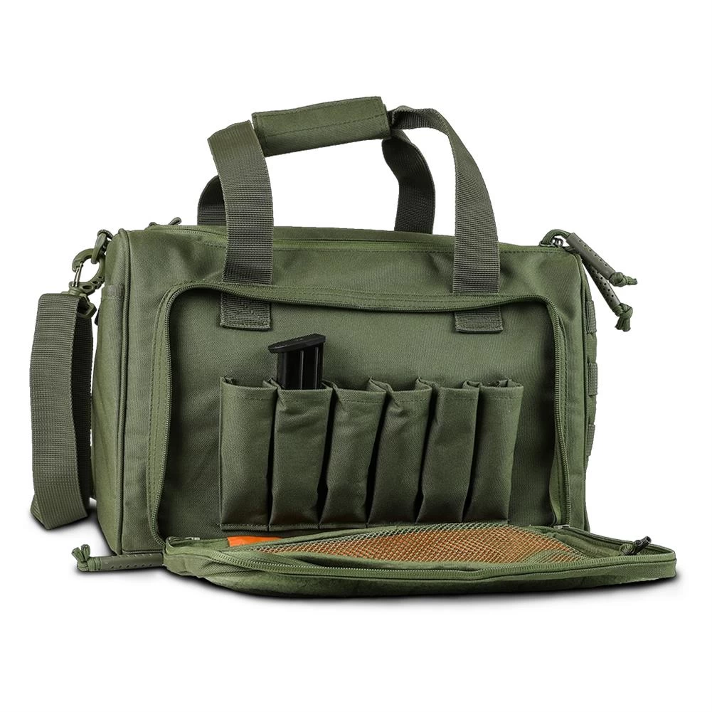 The Propper Range Bag is the ideal carrying case for trips to the range. It has ample space for all of your weapons and ammunition, as well as any additional gear, such as ear and eye protection, shooting gloves and modular firearm attachments. The front pocket features six pistol magazine slots for maximum organization and has MOLLE-compatible webbing and a loop field for additional attachments. The rear pocket also has a customizable loop field. There is a removable fold out mat on which you can rest your weapon, and extra removable hook and loop organizer panels. The interior features a contrast lining for low-light situations, and a padded adjustable shoulder strap for convenient, comfortable carry.