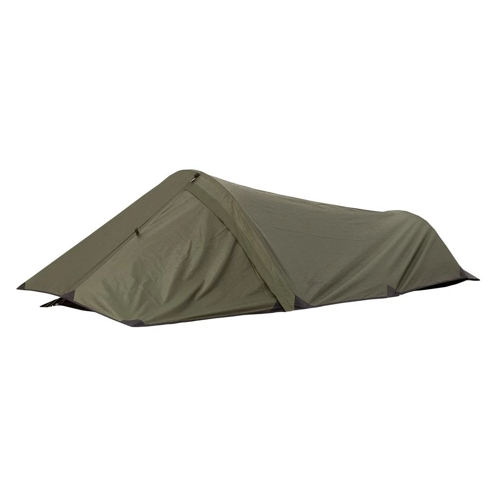 Snugpak’s lightest 1 person tent, the Ionosphere IX is an extremely small, compact one-person tent. With a two-pole, easy to pitch design, the tent forms a hooped shelter that keeps condensation build-up to a minimum. The inner tent is made of a No-See-Um mesh mosquito net to not only keep out bugs, snakes, etc. but it can also be used without the fly as a stand-alone mosquito shelter/barrier in the summer months and warmer climates. The Ionosphere IX will shelter you from all but the worst inclement weather, with a 5000mm hydrostatic head (HH) polyurethane (PU) coated fly sheet, with taped seams. The Ionosphere IX has an impressive floor space, measuring 240cm/94″ long and 90cm/35″ wide, creating ample room for a single person with some equipment. In an emergency, the Ionosphere IX can accommodate two people. The low profile Ionosphere IX tent packs down small with a light trail weight of 1200g/49oz. Using tried and tested lightweight anodised aluminum poles, it does not take up valuable space in your pack. The Ionosphere IX is ideal to use when light weight and small pack size are essential. A tried and tested favourite of Hill and Moorland Leaders, Mountain Leaders & Military personnel where more robust protection from the weather elements is required.