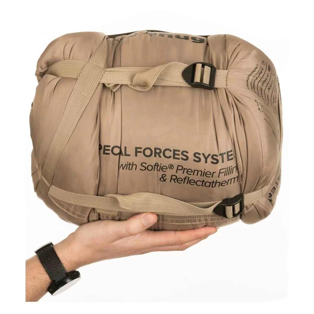 Ultimate versatility was the aim of this systems design so that it suits any trip in any environment. You can use the sleeping bags individually or layer them together to cover all conditions. The Special Forces System gives you the Special Forces 1 Bag for use in above freezing temperatures and the Special Forces 2 Bag for use in temperatures right down to -10°C. Then, when you’re in extreme conditions, you place the Special Forces 2 Bag inside the Special Forces 1 Bag and join them together with the extra zip baffle, so you’re protected in conditions right down to -20°C. Ingenious! When joined in this way, you retain the convenience of closing and opening with one central, quick release zip. Both bags have a reinforced foot area and come with a stuff sack to keep everything together. Available for purchase as a whole system or can be built up from the various Special Forces sleeping bags. Please note: The Baffle on a Special Forces System in Multicam will be manufactured in Desert Tan to match the lining of the bags.