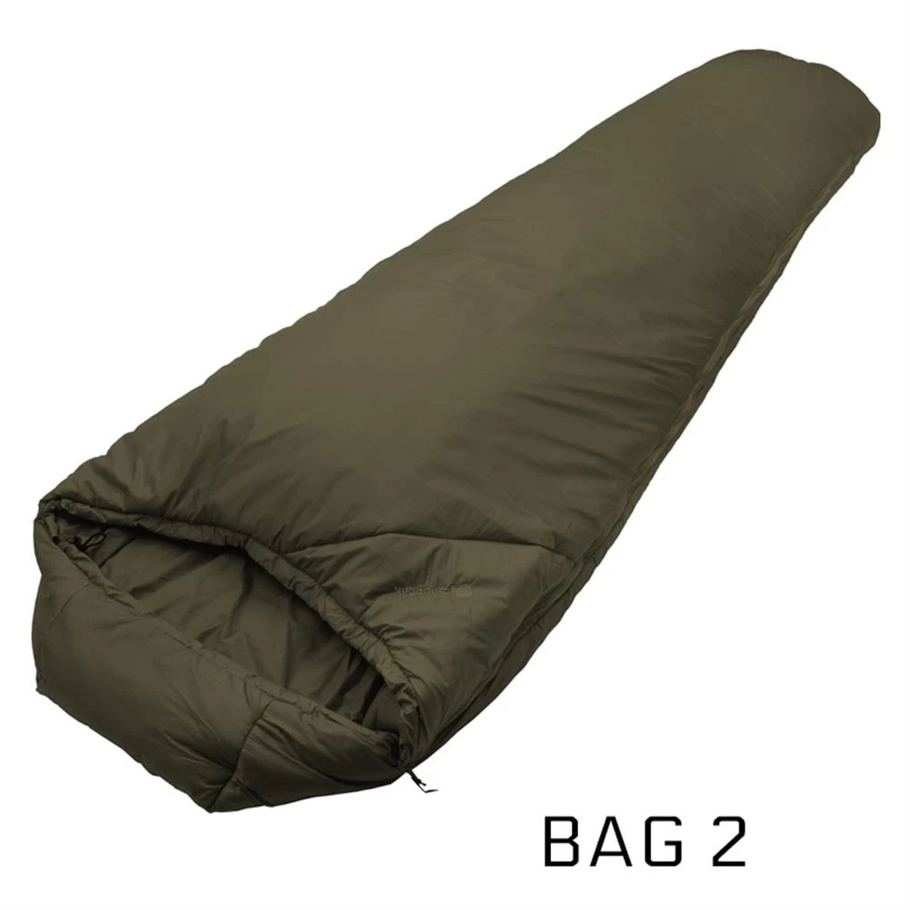 The Snugpak Versatile Tactical System (V.T.S.) is a system that comprises two versatile bags which can be used together in extreme conditions or separately to keep weight and pack size proportional to the performance required for your particular mission. It comes supplied with one compression stuff sack to house both bags. It has a unique self-contained zip system that allows the bags to be zipped together easily to avoid unnecessary movement when used together. A “Sleep System / Complete System” combines 2 different bags connected with either a Zip Baffle or by connecting or zipping together. These sleeping systems are designed to be layered together to cover all different types of weather conditions.