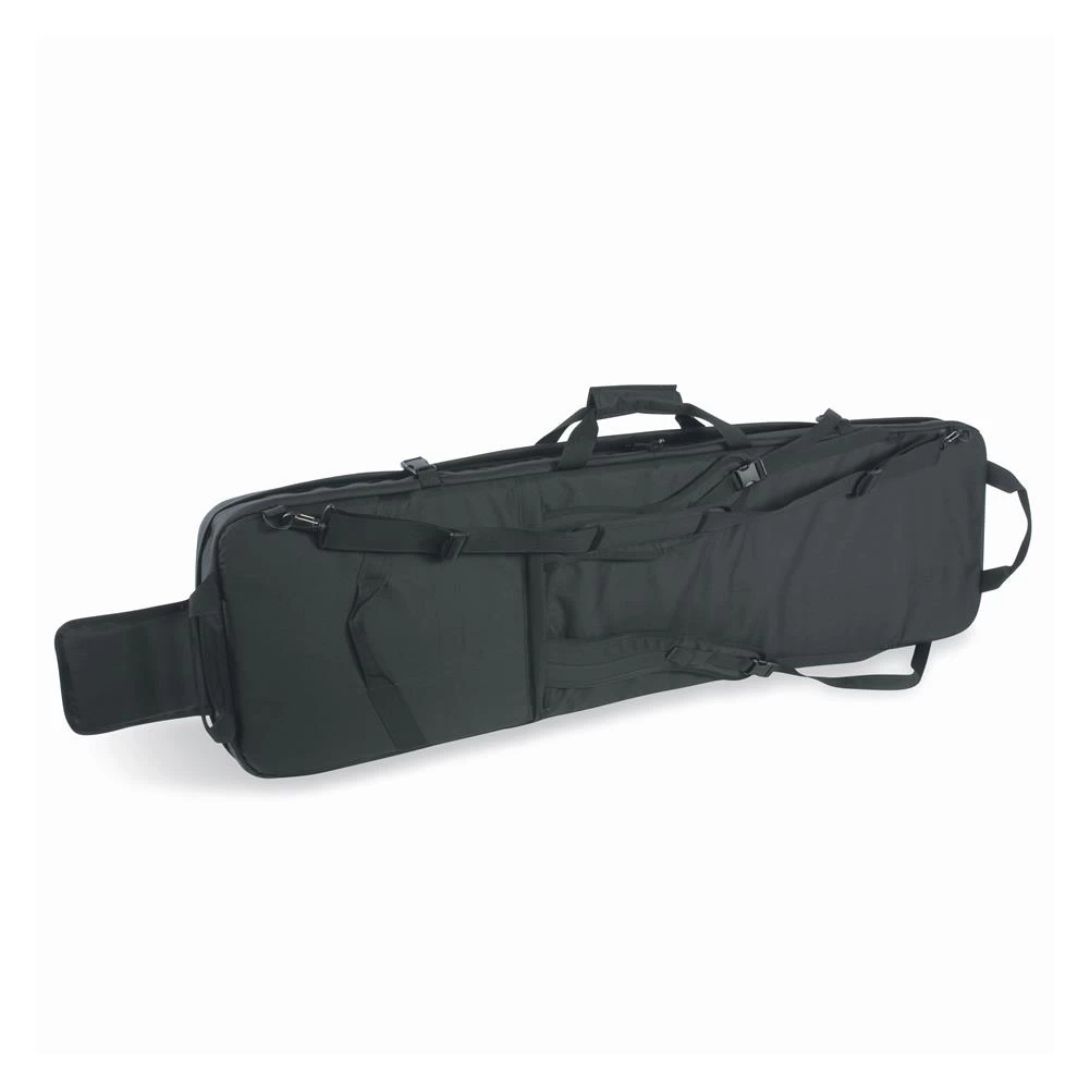 The TT DBL Modular Rifle Bag is a soft carrying case for two rifles. It is well padded and has a removable padded divider to separate each weapon. If only one weapon is to be transported simply remove the divider. One of the gun sleeves can be extended to accommodate a weapon up to 55in/140cm long. There are two external side pockets for smaller equipment parts that are attached to the front of the bag. With numerous loops and compartments, small parts can easily be stored. You can carry the bag by hand, using the handles, over the shoulder with the carrying strap or on your back like a backpack.