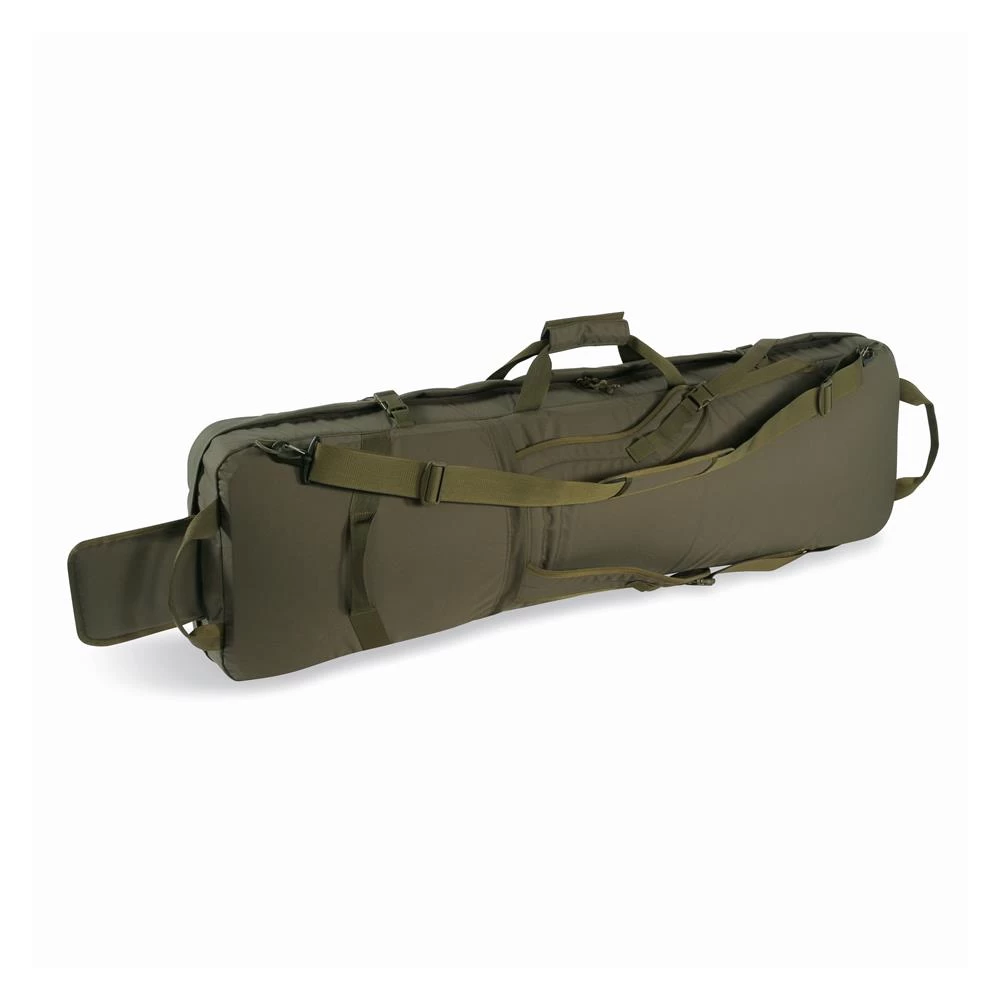 The TT DBL Modular Rifle Bag is a soft carrying case for two rifles. It is well padded and has a removable padded divider to separate each weapon. If only one weapon is to be transported simply remove the divider. One of the gun sleeves can be extended to accommodate a weapon up to 55in/140cm long. There are two external side pockets for smaller equipment parts that are attached to the front of the bag. With numerous loops and compartments, small parts can easily be stored. You can carry the bag by hand, using the handles, over the shoulder with the carrying strap or on your back like a backpack.