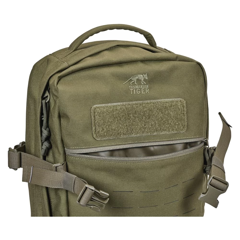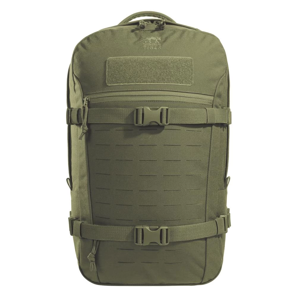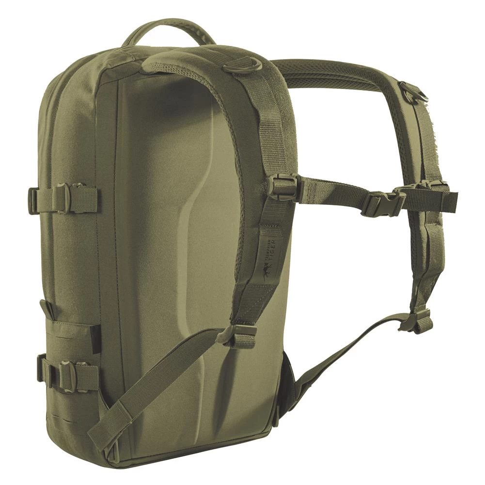 Modular daypack with 23 liters of volume. The backside of the main compartment of the daypack is lined with MOLLE hook panels for attaching compatible loop pouches. It is also designed to hold a 15.4″ laptop. The flat zipper front pocket is great for documents while the laser-cut MOLLE on the front and sides allow you to add gear to suit your needs.