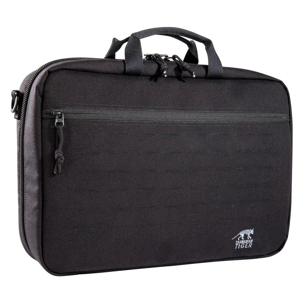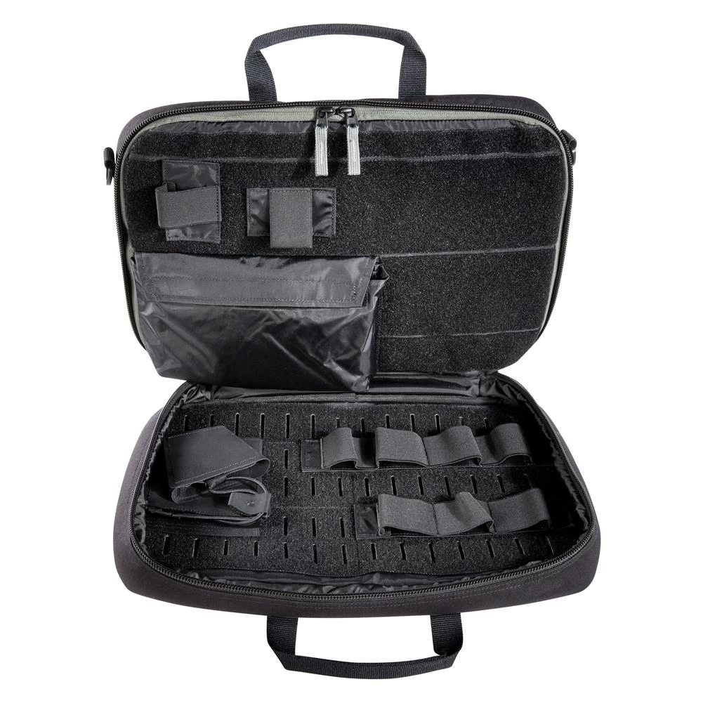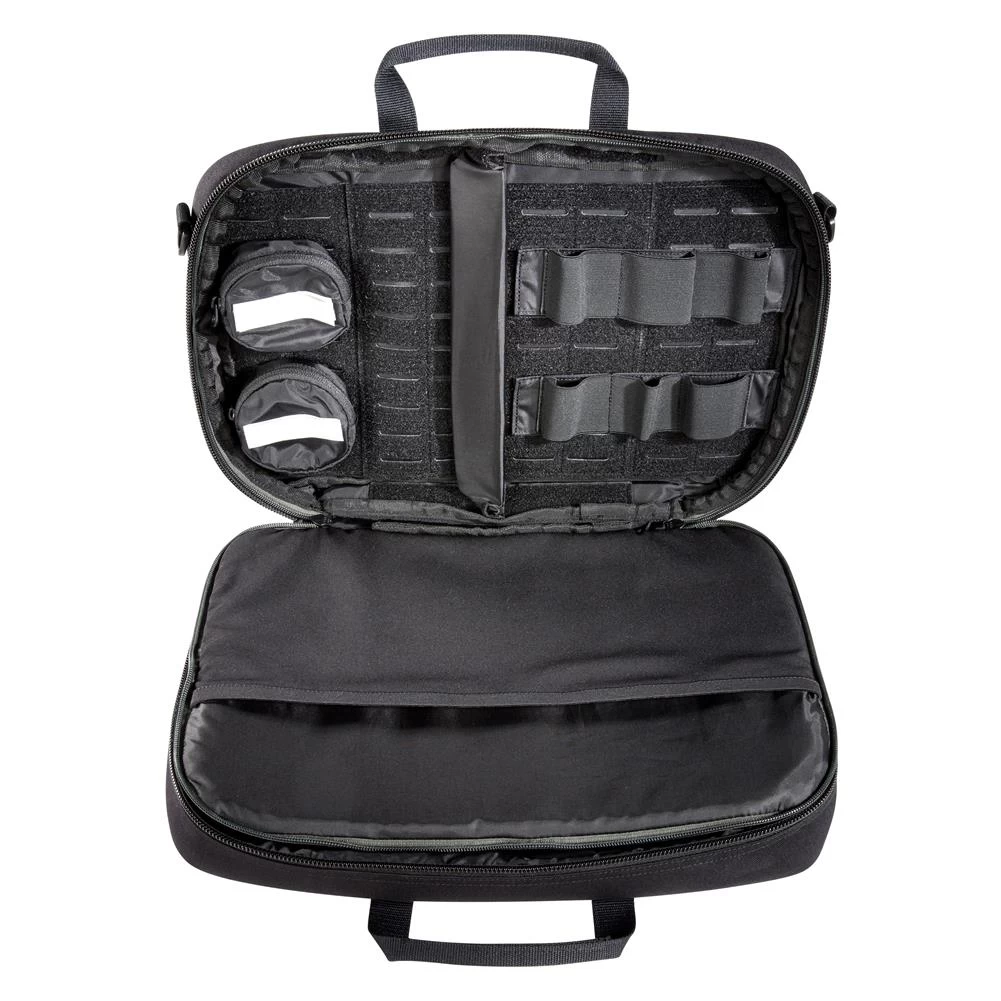 Modular handgun case for two or three weapons. The interior is fully equipped with MOLLE and hook-and-loop storage options. A zippered interior pocket is used for storing a laptop or additional equipment.