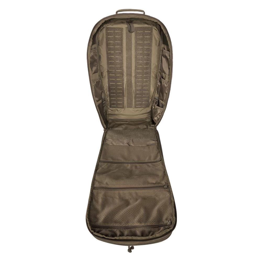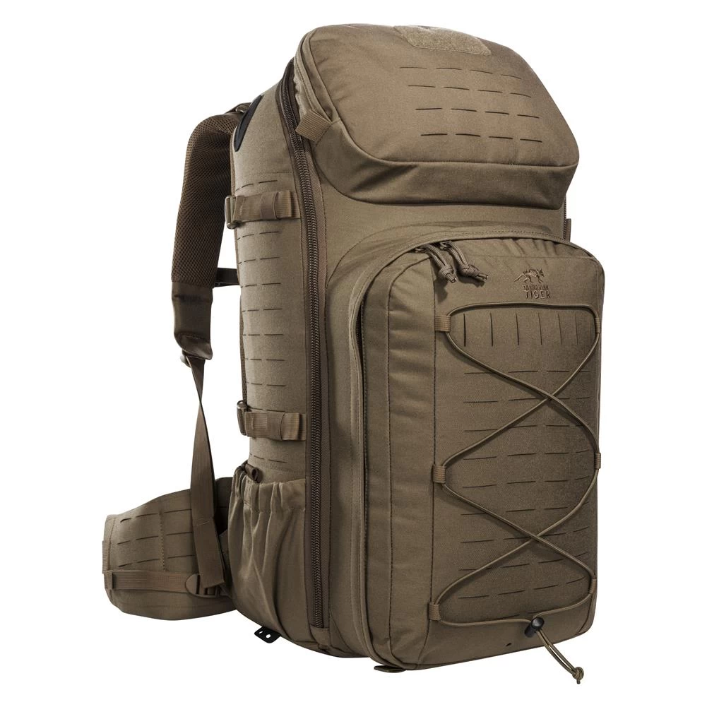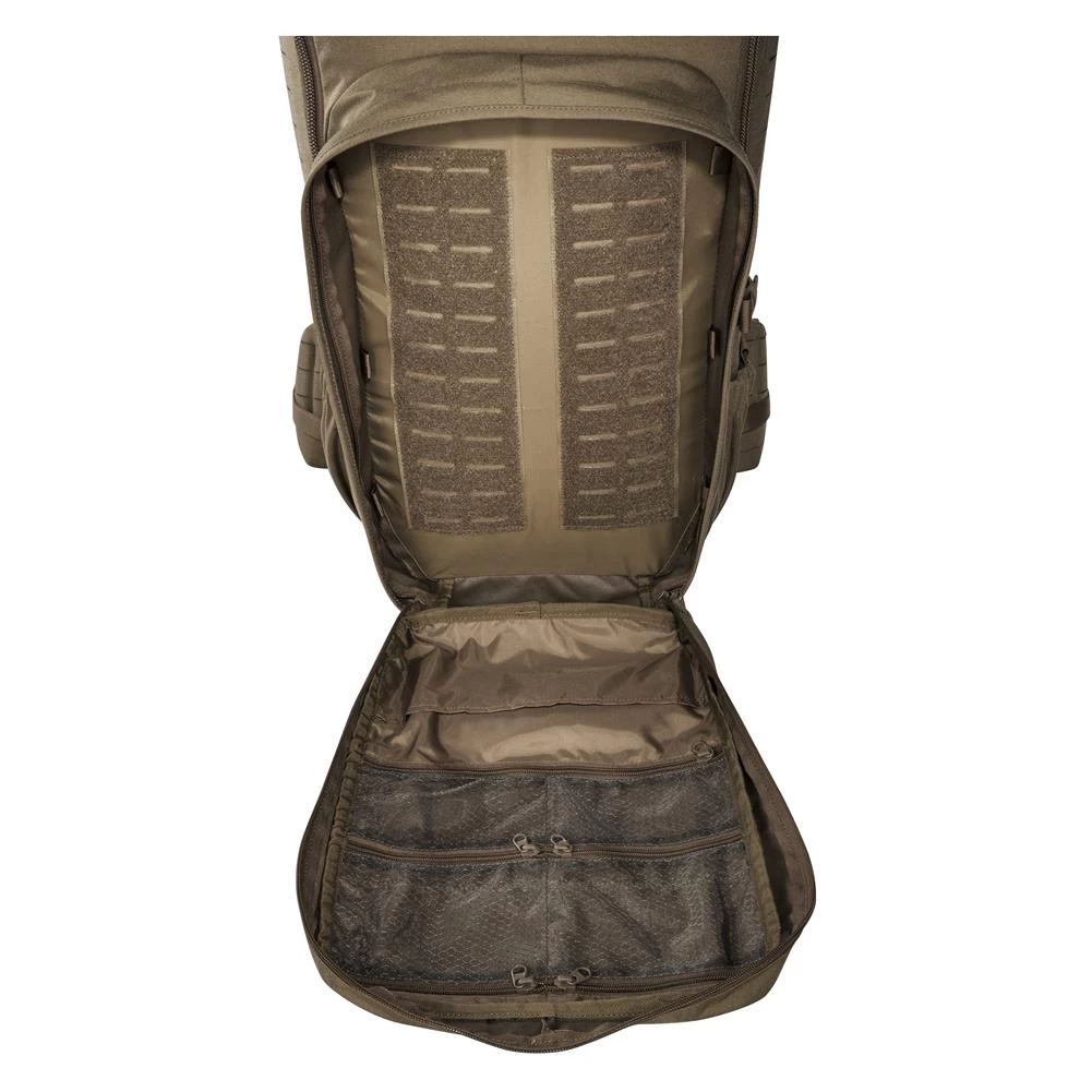 The TT Modular Trooper Pack is a military/tactical backpack designed with TT’s V2 Plus carrying system. It has two outer pockets and laser-cut MOLLE on the front and sides that allow you to customize it by adding pouches or extra gear. With an optimized design and modular functional features, the main compartment opens completely and the special zipper guides make it possible to use the pack as a top loader. The back panels of the front and main compartments feature MOLLE hook-and-loop for customized loading. Both front pockets have zipper mesh pouches to organize your gear. The backpack has an integrated rain cover and a removable hip belt that can also be used as a Warrior Belt. The back panel can be adjusted to different back lengths.