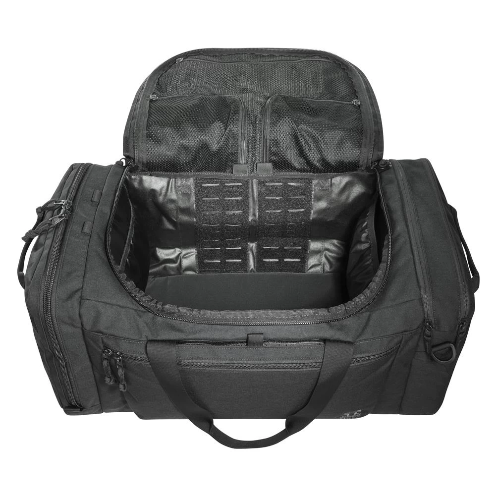 The TT Officers Bag is a travel/duty bag that includes an IFAK pouch. In addition to the main compartment, there a is a zippered pocket on the front and two large pockets on each end. The front of the main compartment has a MOLLE hook-and-loop panel. It can be carried by had, over the shoulder or worn as a backpack.