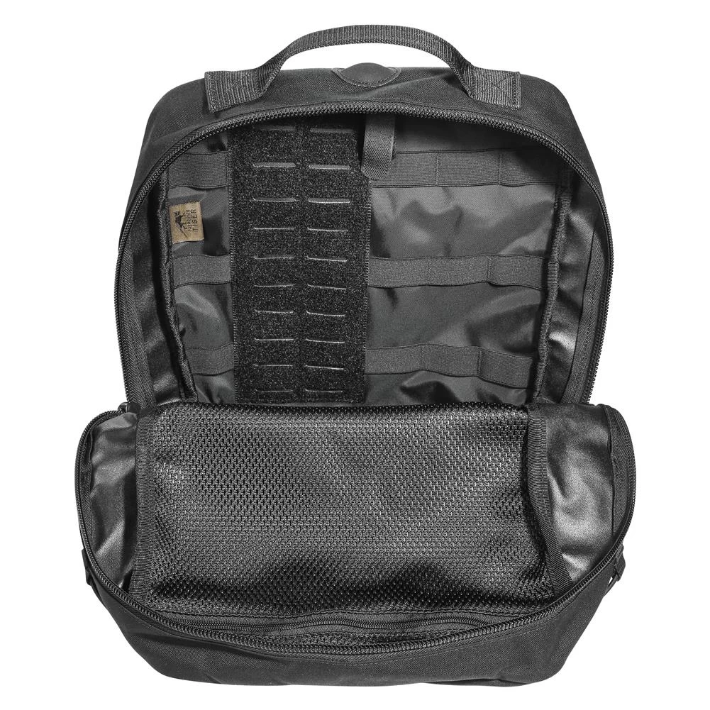 - Inside, it has a pocket, MOLLE hook and loop and elastic loops and the volume can be regulated using bungee cords