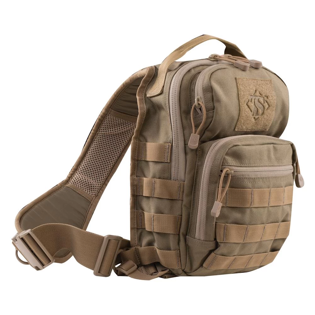 For the storage and utility of a backpack with the compact convenience of a shoulder bag, the TRU-SPEC Trek Sling Pack is designed to be lightweight, mobile and secure. Its innovative design features three concealed pistol pockets for rapid firearm access. The main compartment pistol pocket is behind a padded sleeve, which can also serve as a tablet or small laptop protector. The front pistol pocket offers the most convenient access, and simply folds down when opened to reveal the firearm. While ensuring comfort and breathability, the padded foam back panel also folds down and shows a third pistol pocket. Perfect for CCW use, this pack also features elasticized interior sleeves for magazines and extra ammunition. The front exterior has universal webbing for modular attachments and the strap is adjustable for a customizable fit.