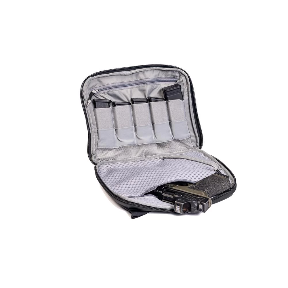 The VTAC Double Pistol Pouch makes the most out of its low visual footprint. The pouch carries four full size pistols and can carry up to ten additional magazines. On the range or on the job, the VTAC Double Pistol Pouch maximizes your loadout so you can maximize results.