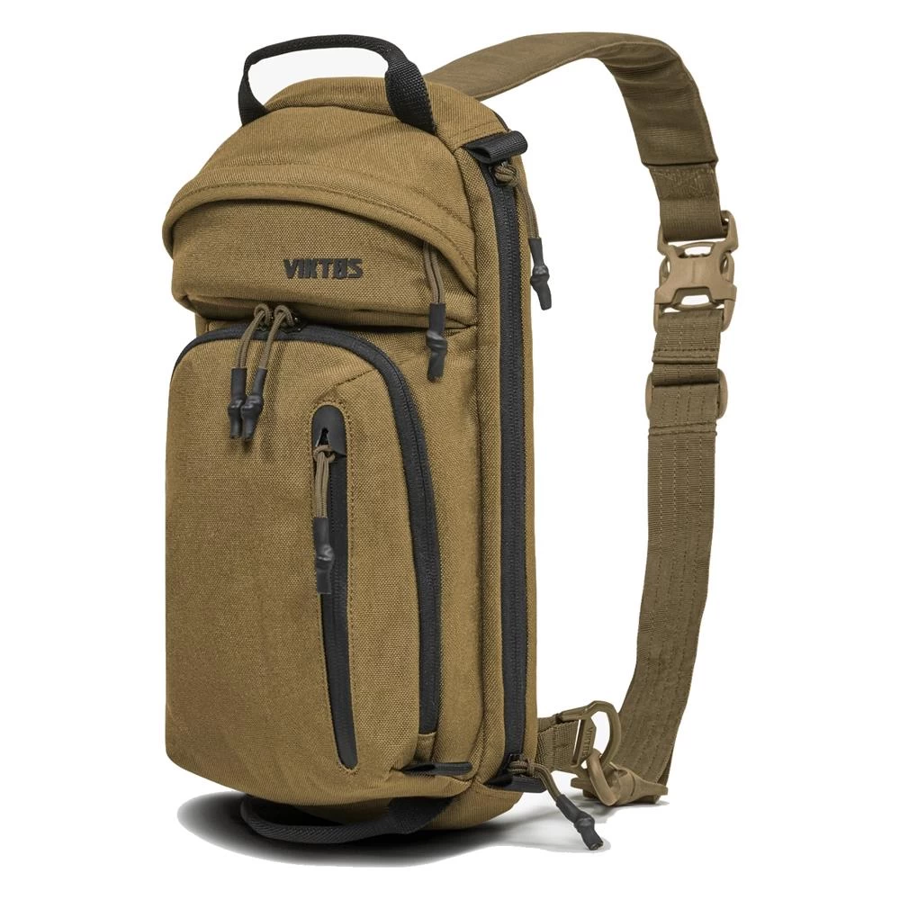 The Upscale3 leather slingbag is designed for professional concealed carry applications. Crafted from premium leather, it features a quick-release aluminum chest buckle and a padded shoulder strap for comfort. The ambidextrous access concealed pistol compartment includes a removable universal hook & loop sleeve holster, as well as organizers for magazines, a tourniquet, and a medkit. The padded sunglass compartment keeps your eyewear secure and provide quick-access for small EDC. YKK zippers with aluminum pulls provide easy access to your gear, and it measures 15” H x 7” W x 5” D – perfect for everyday use. Designed by U.S. veterans and tested by the Viktos team of professional firearms trainers, the Upscale3 slingbag is backed by a 1-year warranty.