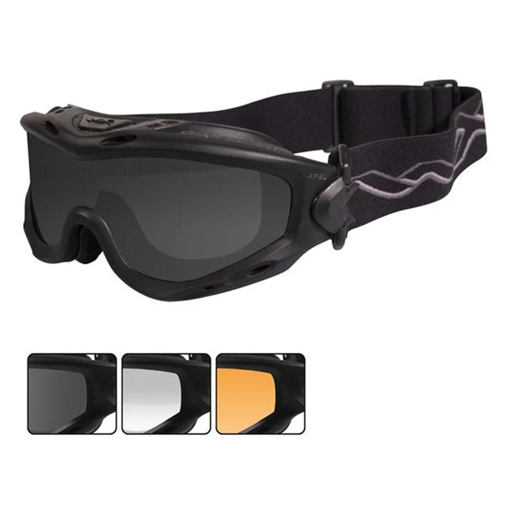 The Wiley X Spear goggles are made for any tactical operation. These goggles feature a low-profile design packed with powerful features, including a Top Down ventilation system to resist fogging, NVG compatibility and lenses that meet ballistic MIL-V-43511C standards. Swivel hinges allow these goggles to be adaptable for use with a helmet or without. The frame and straps are heat-resistant and the strap material incorporates a Tri-Glide system to adjust to an ideal length and fit. A 90-degree wrap-back on the frame eliminates tunnel vision and the 2.5mm lenses keep your eyes safe with 100% UV protection, making these goggles ready to tackle any challenge.